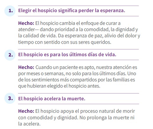 La atención de hospicio a menudo se malinterpreta, lo que lleva a miedo o duda cuando más se necesita. Aclarando mitos frecuentes y entendiendo los hechos, las familias pueden tomar decisiones informadas que respeten las necesidades médicas y los deseos personales.